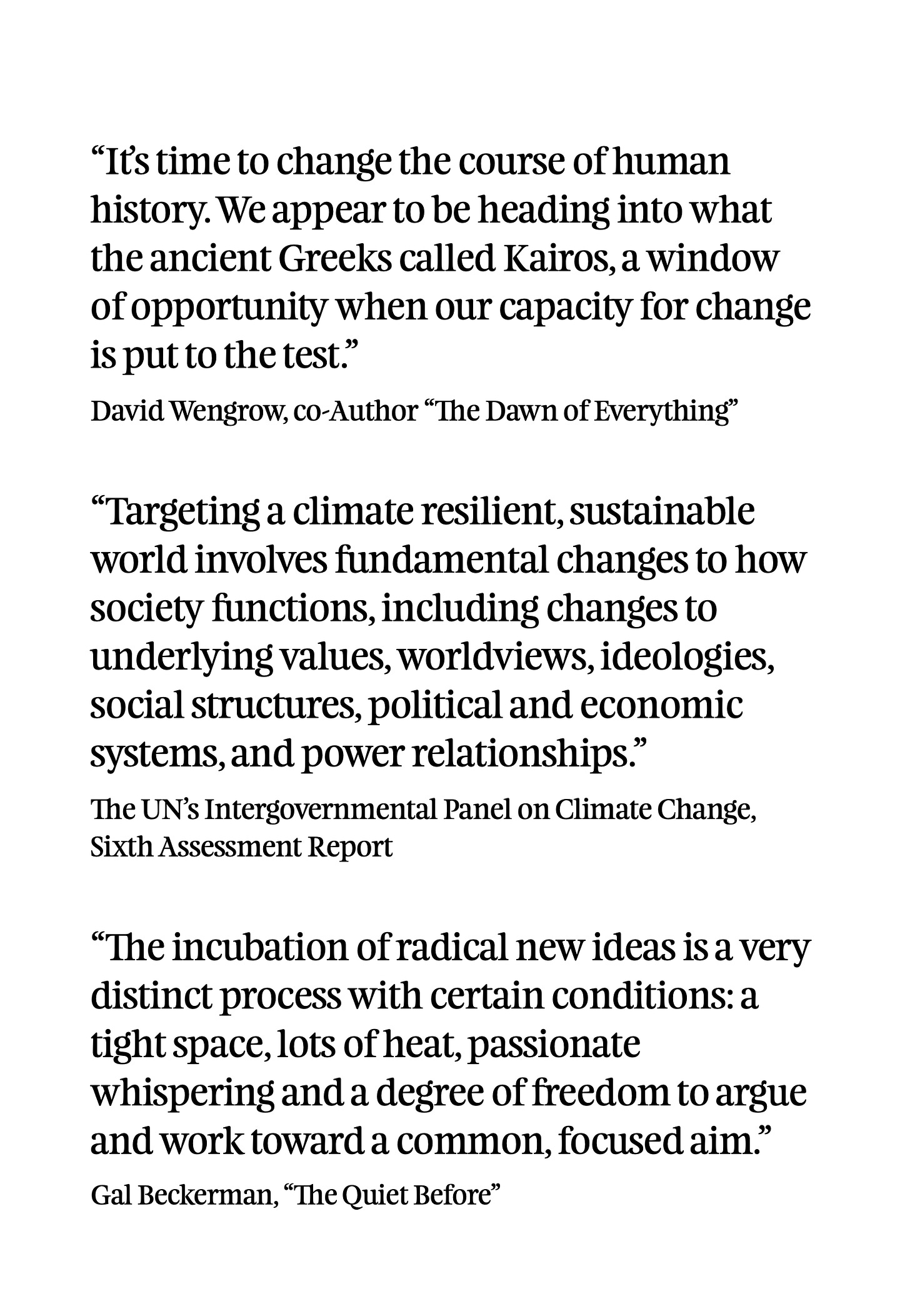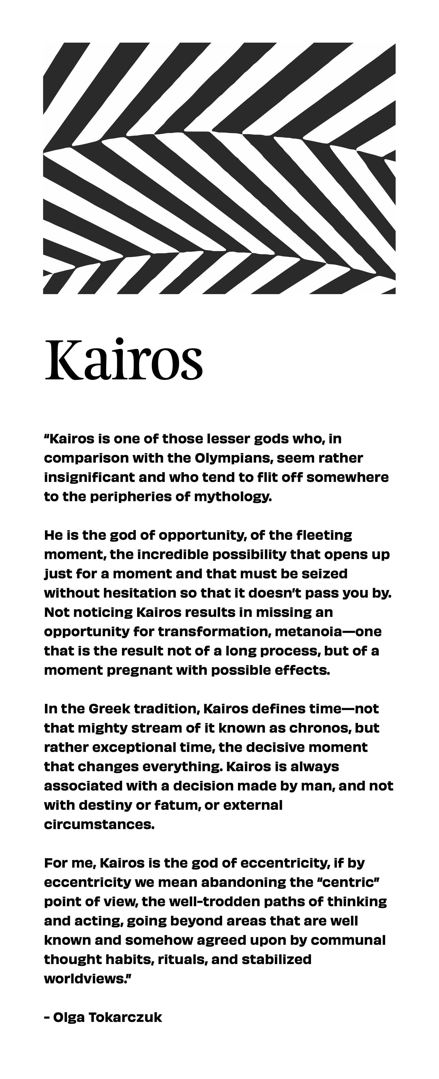 Love the quote from one the graphics in the article: “…Kairos is the god of eccentricity, if by eccentricity we mean abandoning the ’centric’ point of view, the well-trodden path of thinking and acting…” Digging this connection of kairos to eccentricity. The windows, portals and apertures of kairos are ever-present. But they must be taken and acted upon. It feels to me like the time is now ripe for all aware eccentrics to step out of the timeline and rewild the broken clock of history.