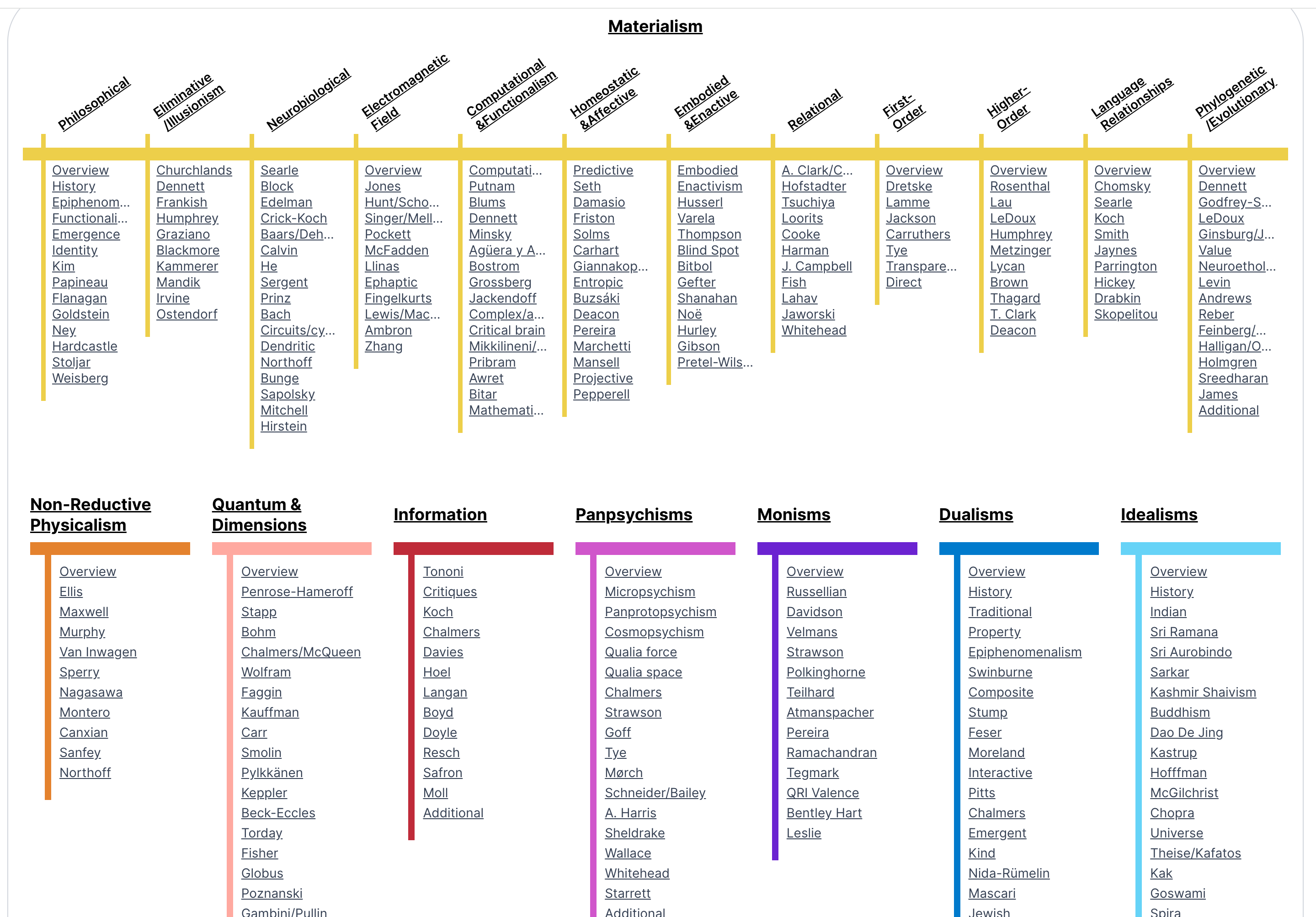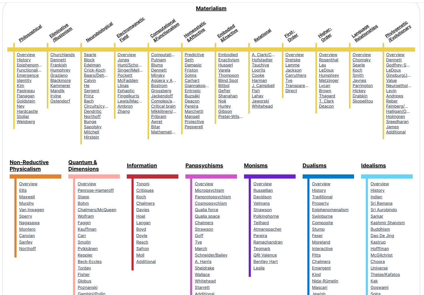 I hadn’t given theories of consciousness much thought for a couple of decades, but I enjoyed The Flip by Jefrrey Kripal a few years ago, which put me back onto this inquiry. I read all of The Matter with Things before Perspectiva published it, but I recently re-read chapter 25 on Matter and Consciousness, which is exquisite (though the second half is exacting). I also read Bernardo Kastrup’s Analytical Idealism in a Nutshell, and then Decoding Jung’s Metaphysics by the same author. And I read most of For The Love of Matter by Freya Matthews. I browsed The Landscapes of Consciousness site below, and read, hot off the press in November 2025, Universal consciousness as foundational field: A theoretical bridge between quantum physics and non-dual philosophy by Maria Stromme. I also watched lots of videos. The Essentia Foundation’s production of “The Hidden War on Consciousness” with Alex Gomez Marin is good. I lost track of exactly which Rupert Sheldrake videos made the biggest impression, but I listened to his recent lecture on Panentheism twice, his talk with Kurt Jaimungal is edifying, and his conversation with Kastrup is worth seeing, not least for why Sheldrake does not consider himself an idealist.