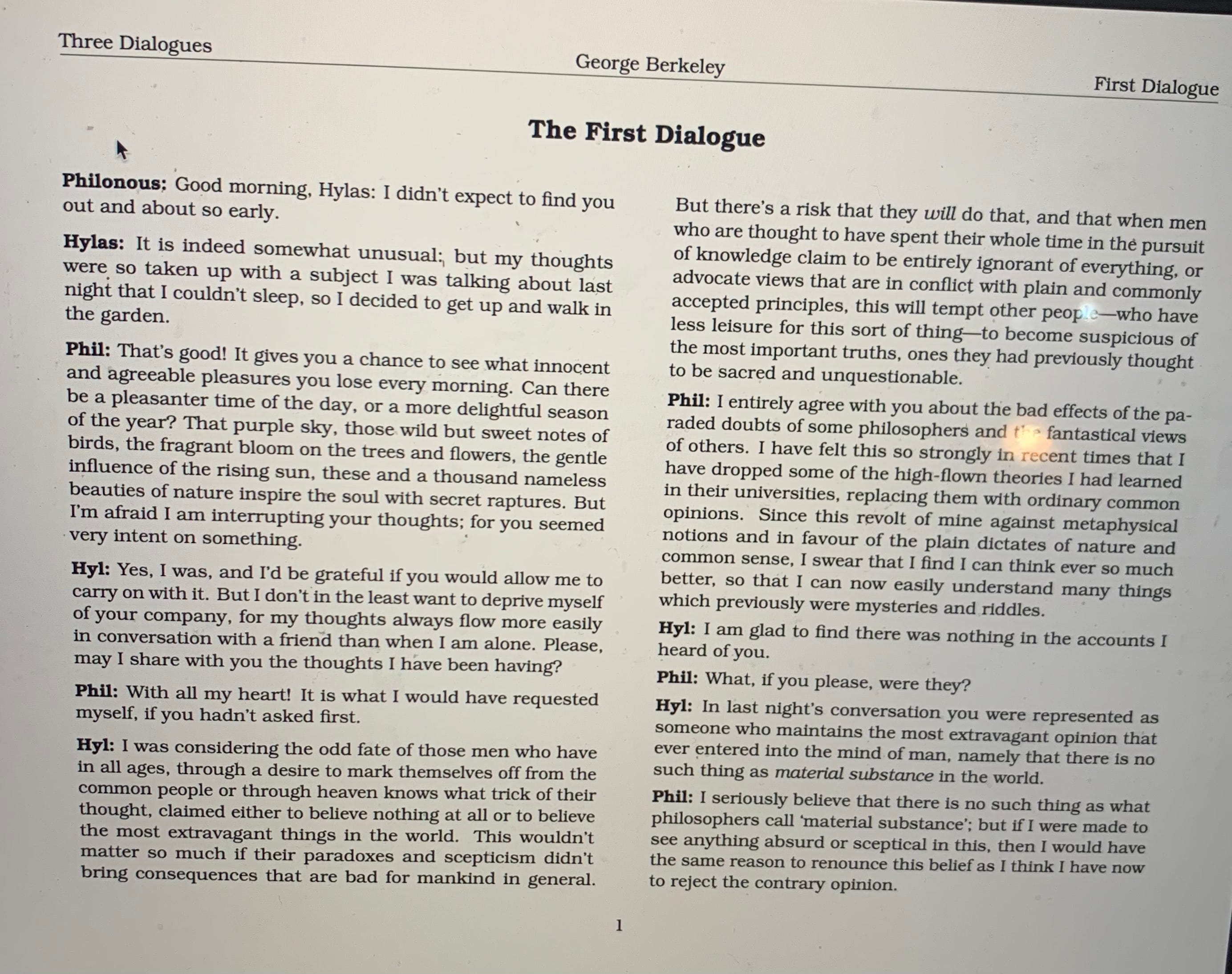 Let me share what I have researched to give you some idea of why I consider this issue important. I read Bishop Berkeley’s Dialogues as an undergraduate c1997 - a classic text for idealism. I find the opening chit-chat endearing: “That purple sky, those wild but sweet notes of birds…”